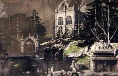 As Sebastian makes his way through them, he encounters many perils, such as droves of Haunted, some operating suspended platforms, completely protecting them until they open up the shield doors to fire a barrage of harpoons down upon Sebastian and Joseph. After taking out all of the harpoon gunners, the waves of Haunted stop pursuing them, and Sebastian and Joseph become separated briefly, Sebastian having to defeat the Sadist once more. After this, the two ride an elevator to the top of the large building, which takes them to the foot of a bridge that connects to a cliffside. Joseph, eager to take out two Haunted executing people at a guillotine, triggers a tripwire, setting off a dynamite trap that once again separates them. Sebastian saves Joseph and the two of them make it through a large doorway that has to be cranked open, Sebastian holding off the oncoming Haunted attack while Joseph opens the doorway.