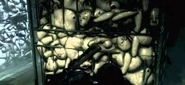 Accessed from a stairway leading to the employee office, the storage area is the main workshop where the abundance of spare parts were kept in barred bins, awaiting assembly and shipment. Inside STEM, the storage area suffers a gas leak, and will erupt in a burst of flames if Sebastian uses any firearms or matches. The Haunted lurking the area all wear black insulated coveralls, which could denote them as workers, though the true meaning is unclear. If they light their dynamite, the storage area and the room leading to the balcony explode violently.