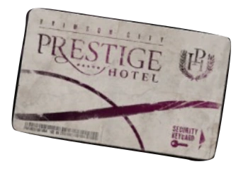 The Prestige Hotel keycard that Juli acquires in The Consequence.