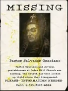 The Pastor's downfall began during a scandal when the floor of the congregation room collapsed during "renovation", and KCPD began an investigation, uncovering the catacombs, where numerous mummies and sepulchers were uncovered by repairmen, which Graciano denied any knowledge of, proceeding to bar their entry, telling them it was "sacrilege". When rumors of scandal got out, the construction foreman, Chris Taylor, mysteriously disappeared, likely abducted by Graciano's men.